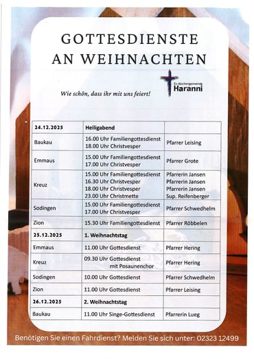 Gottesdienste an Weihnachten in Haranni