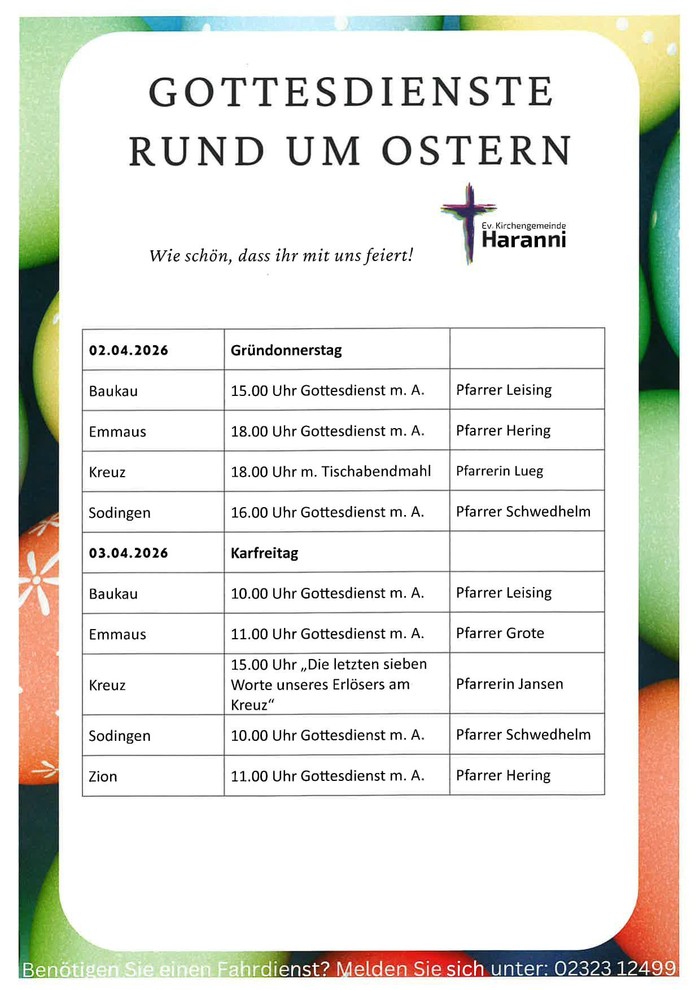 Gottesdienste rund um Ostern- Gründonnerstag, Karfreitag
