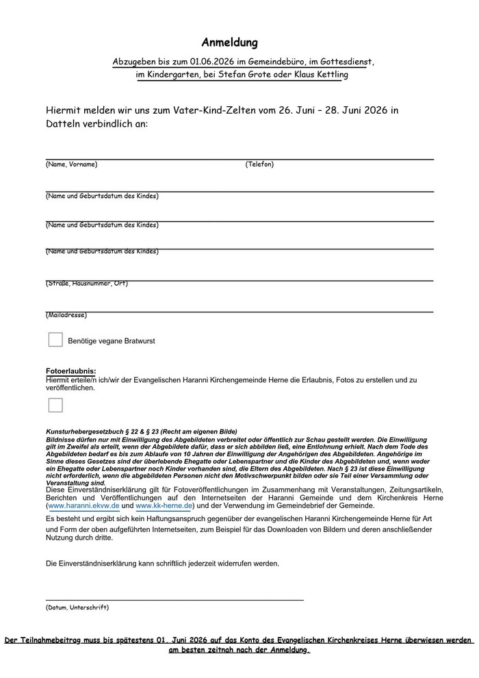 Anmeldeformular: Vater-Kind-Zelten 2026 - 26. - 28. Juni 2026 - Klaukenhof Datteln