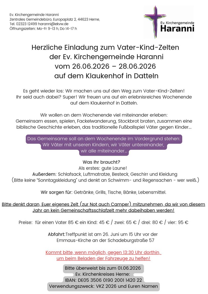 Vater-Kind-Zelten 2026 - 26. - 28. Juni 2026 - Klaukenhof Datteln